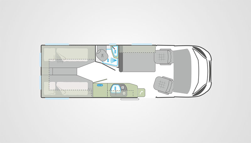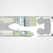 Ahogy a többi CaraBusban, itt is kényelmes étkezősarokká alakítható ki a vezető fülke üléseivel. A konyha fiókjaiban pedig bőséges hely áll rendelkezésre az utazáshoz. Az elrendezés olyan pazar, hogy az utazás puszta öröm!